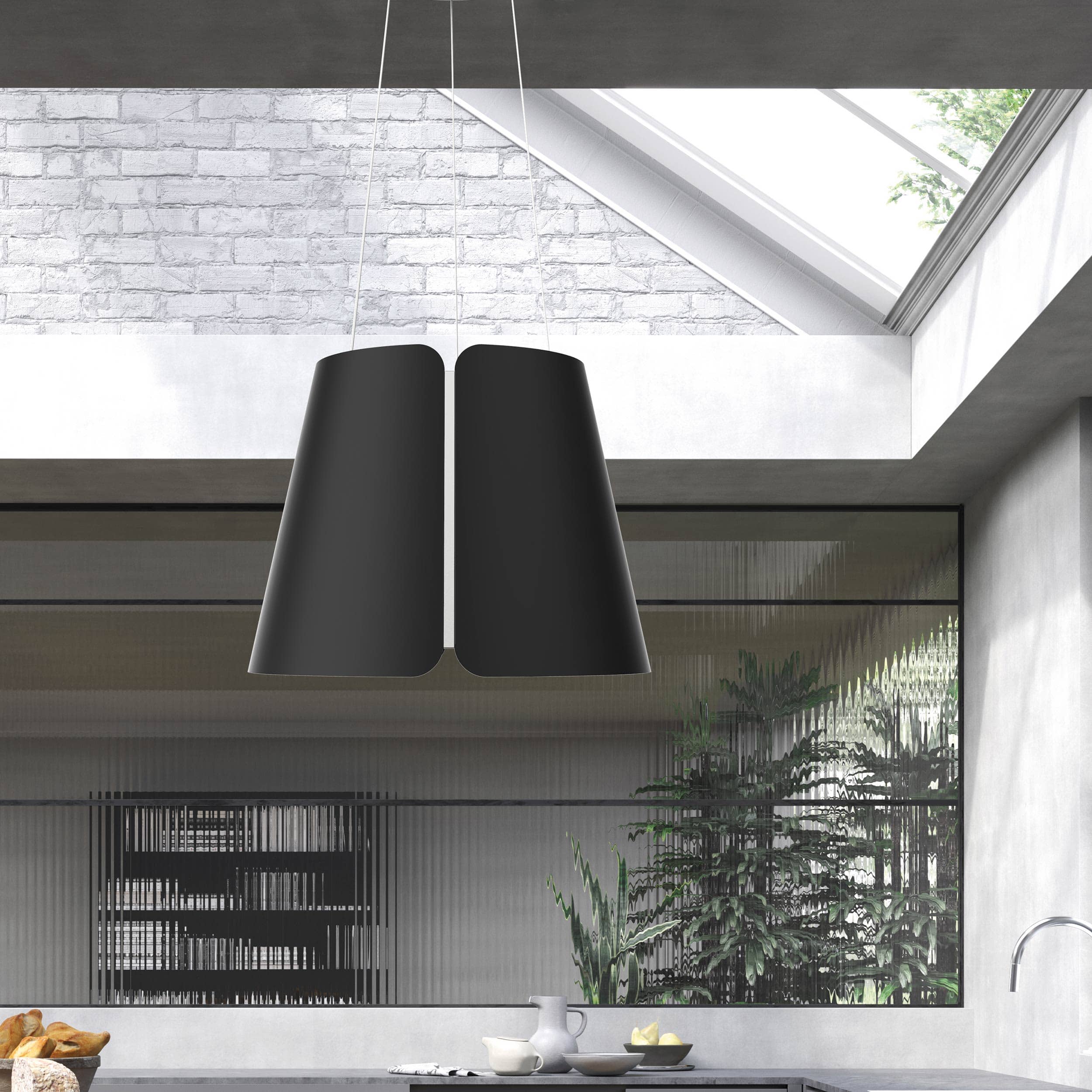 Vapaasti roikkuva liesituuletin vaijerikiinnityksellä, sisäinen moottori ja kierrätyssuodatin – Matta musta – Ø430 mm – A