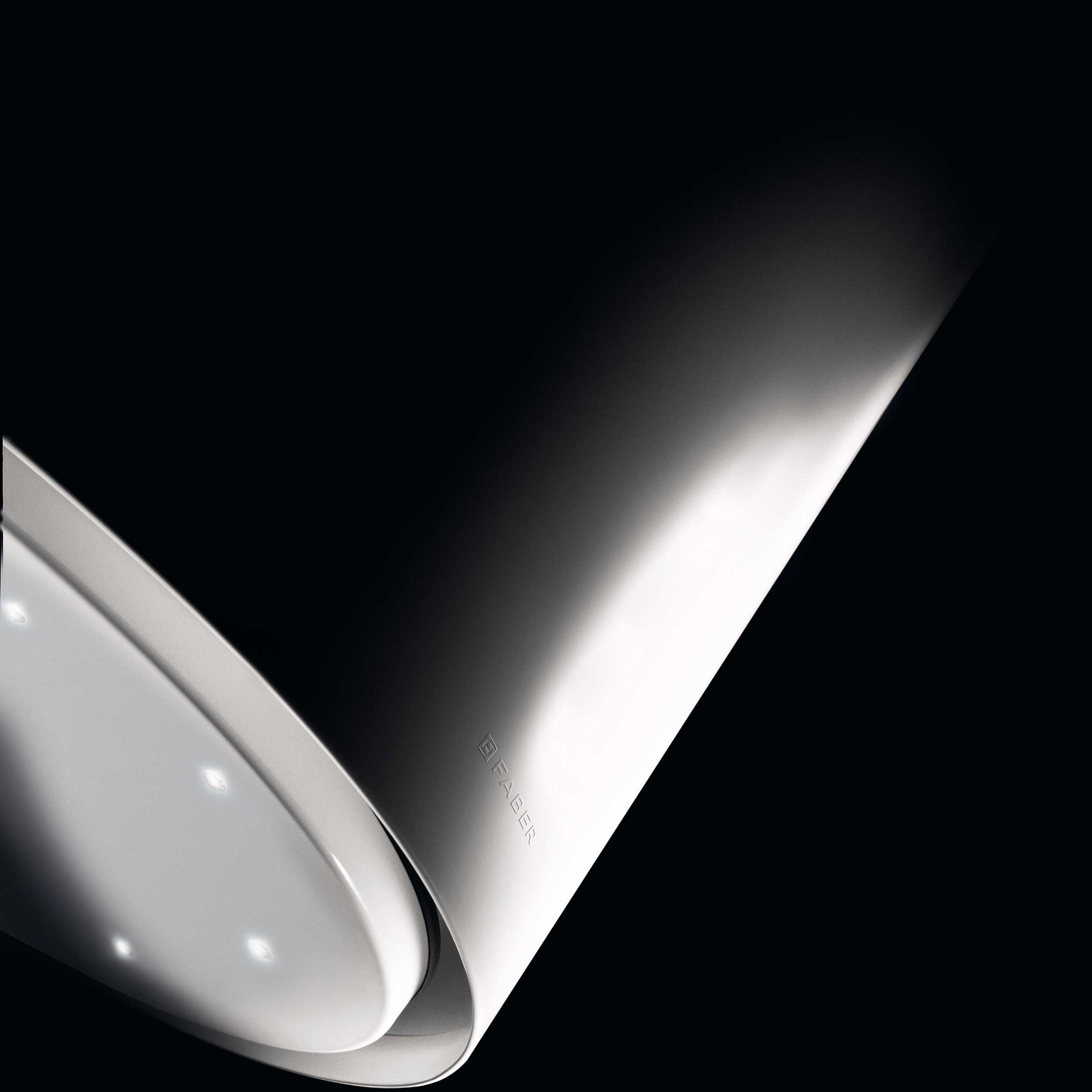 Vapaasti roikkuva liesituuletin – Valkoinen / Crystal White -lasi – Ø370 mm – Energialuokka A