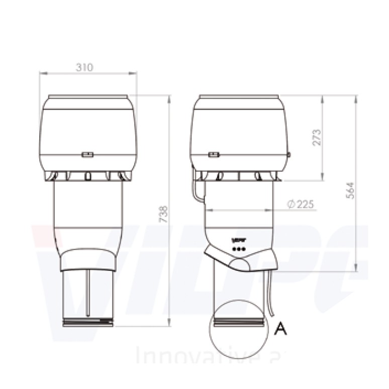 Huippuimuri kaltevalle katolle, Distante SM, Ceiling Stripe SM, EicoE22 SM, Aida SM - Tiilenpunainen