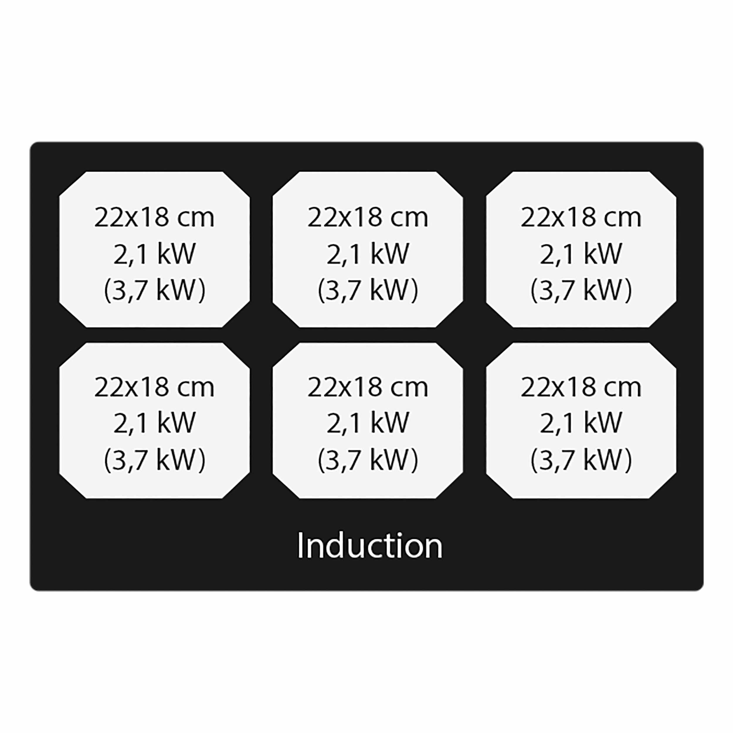 Induktiokeittotaso älykkäällä induktiolla, jossa viisto etureuna ja suora reuna sivuilla ja takana - Kokomusta - 780 mm