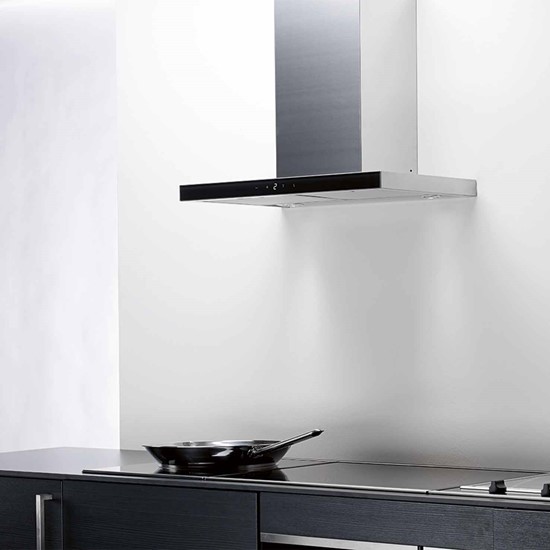 Seinään asennettava liesikupu, Sisäisellä moottorilla - Ruostumaton teräs / musta lasi - 600 mm - A