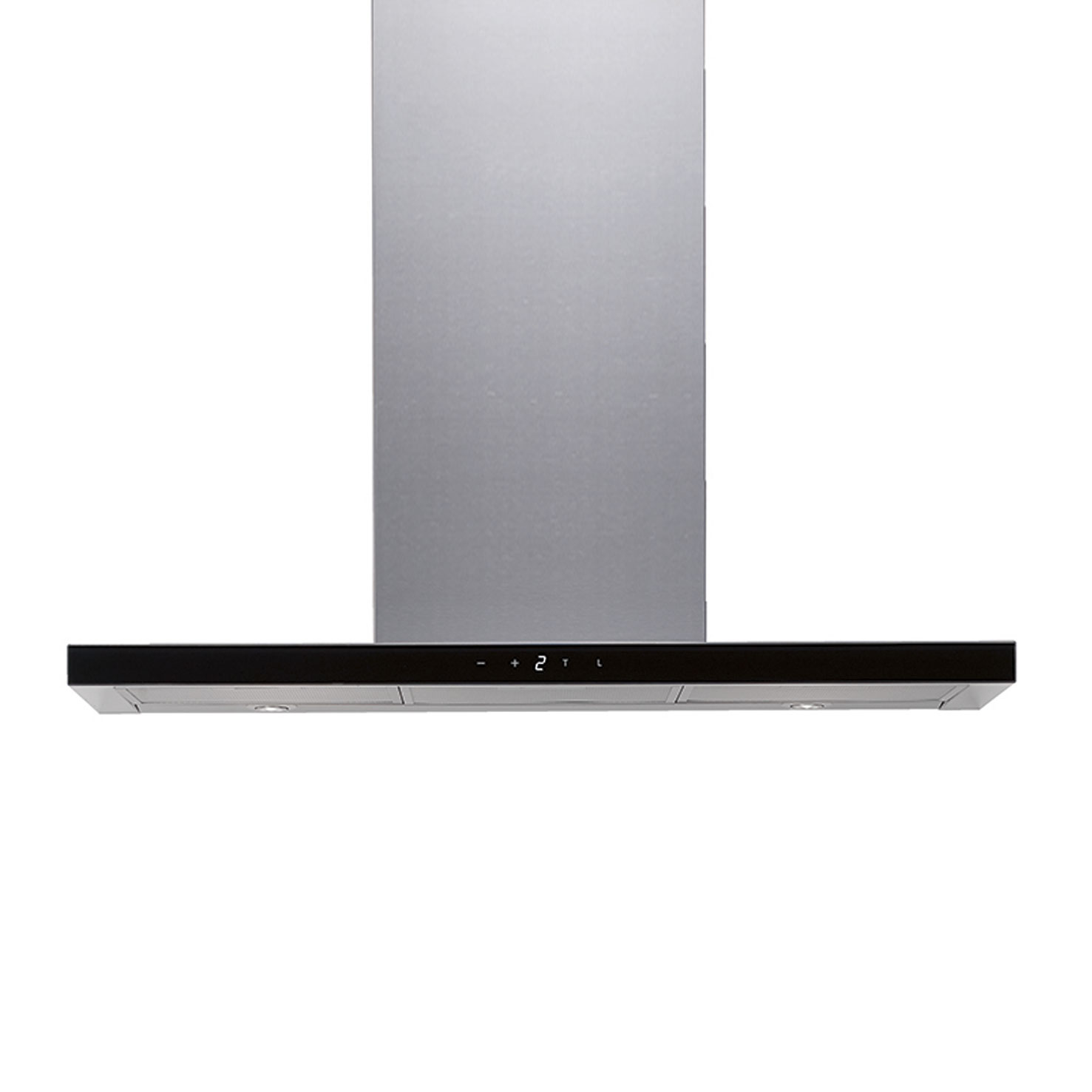 Seinään asennettava liesikupu, Sisäisellä moottorilla - Ruostumaton teräs / musta lasi - 900 mm - A