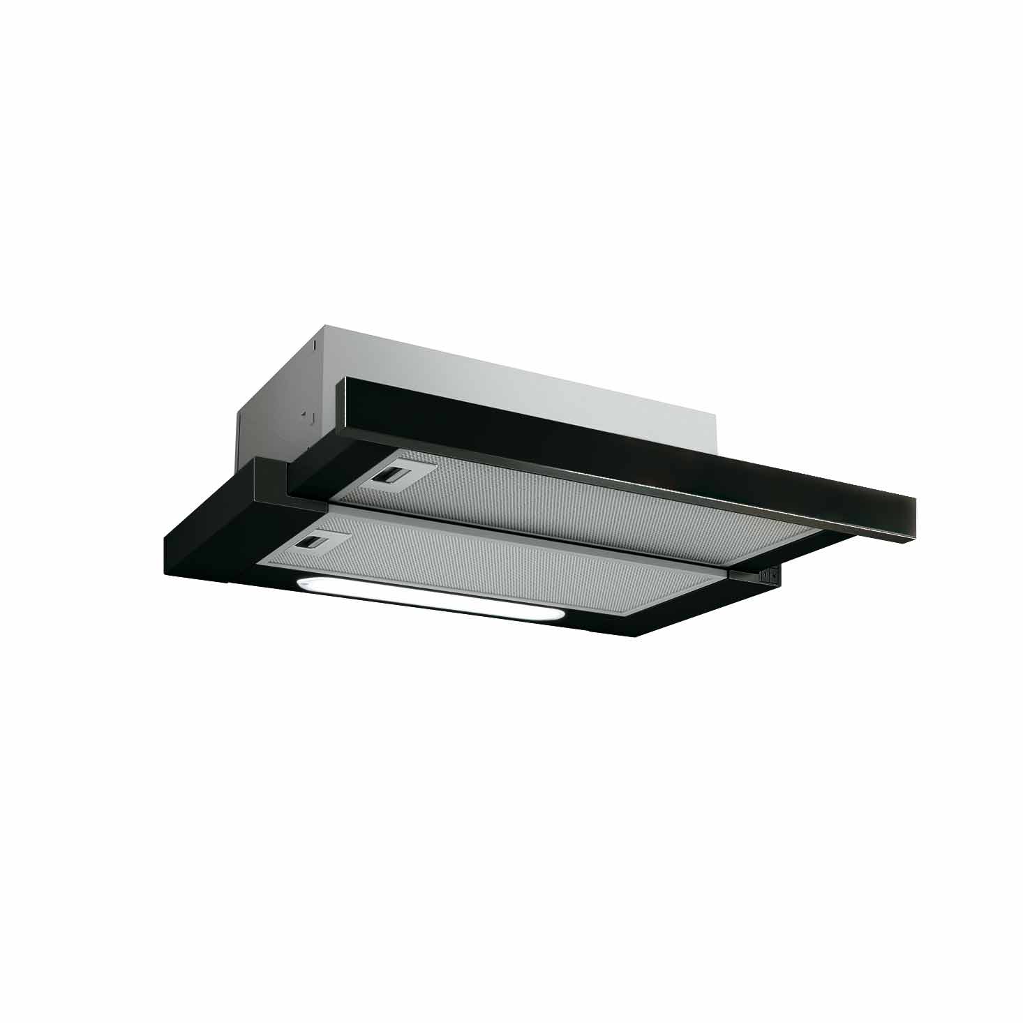 Ulosvedettävä liesituuletin - Sisäänrakennetulla moottorilla - Musta - Leveys 600 mm