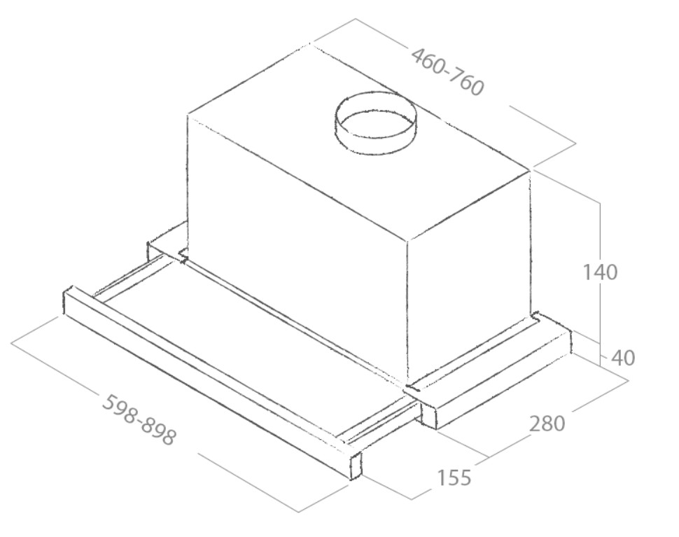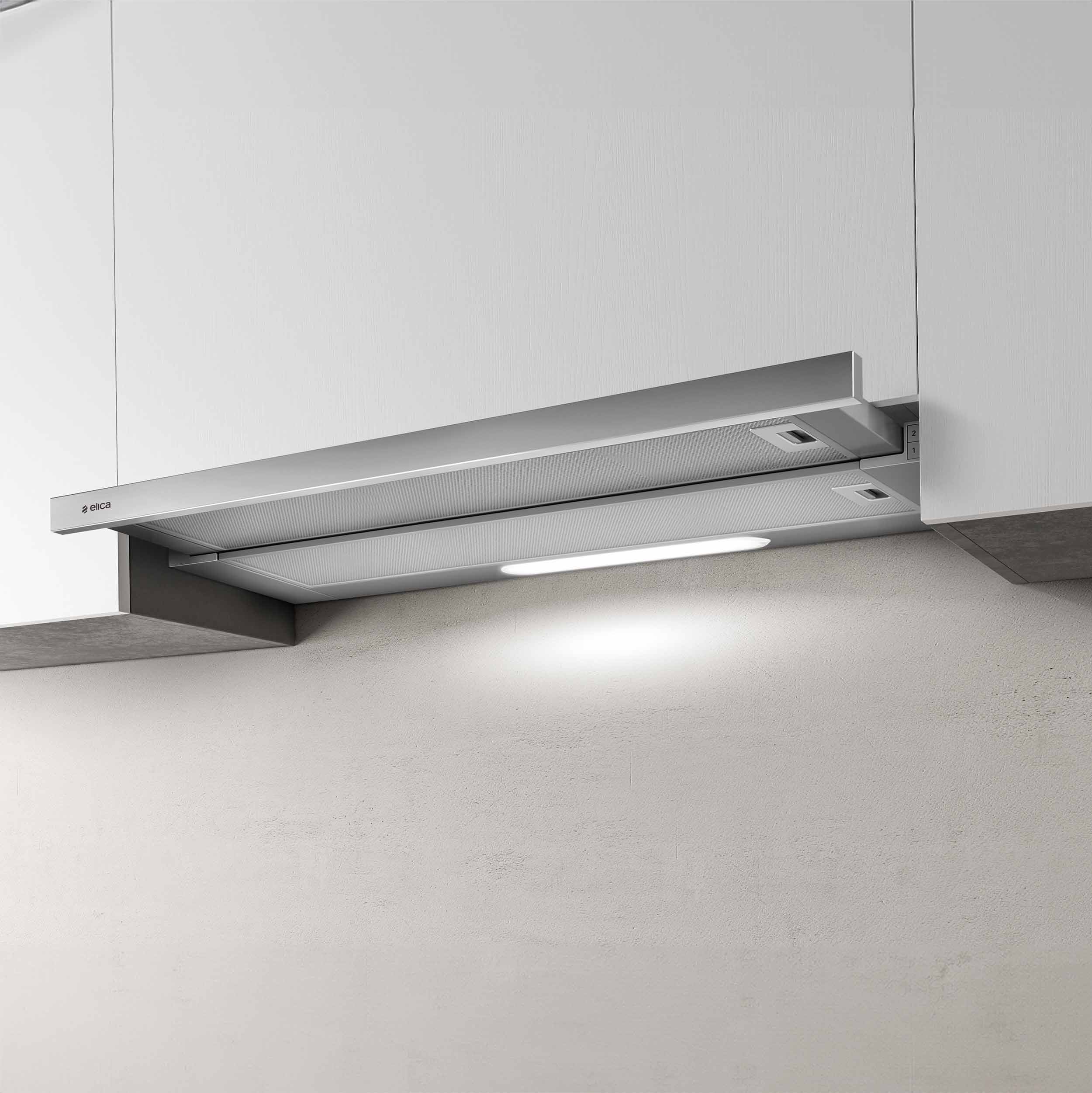 Ulosvedettävä liesituuletin - Sisäänrakennetulla moottorilla - Teräs - Leveys 900 mm