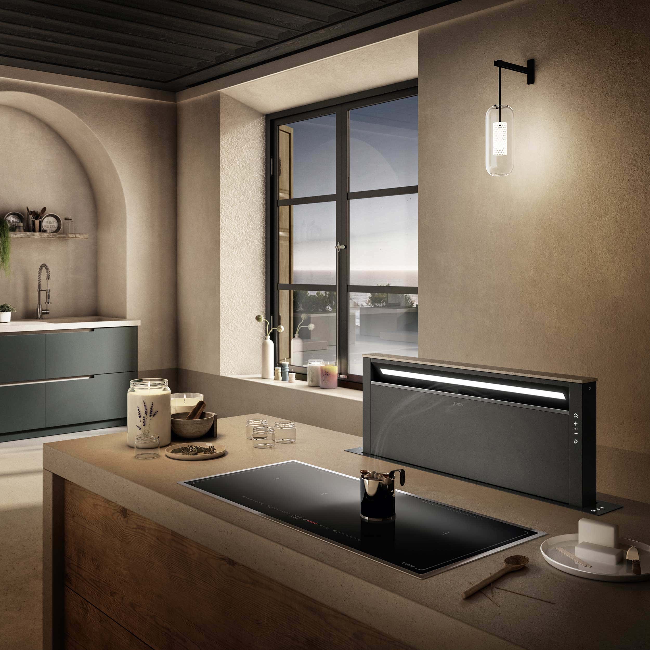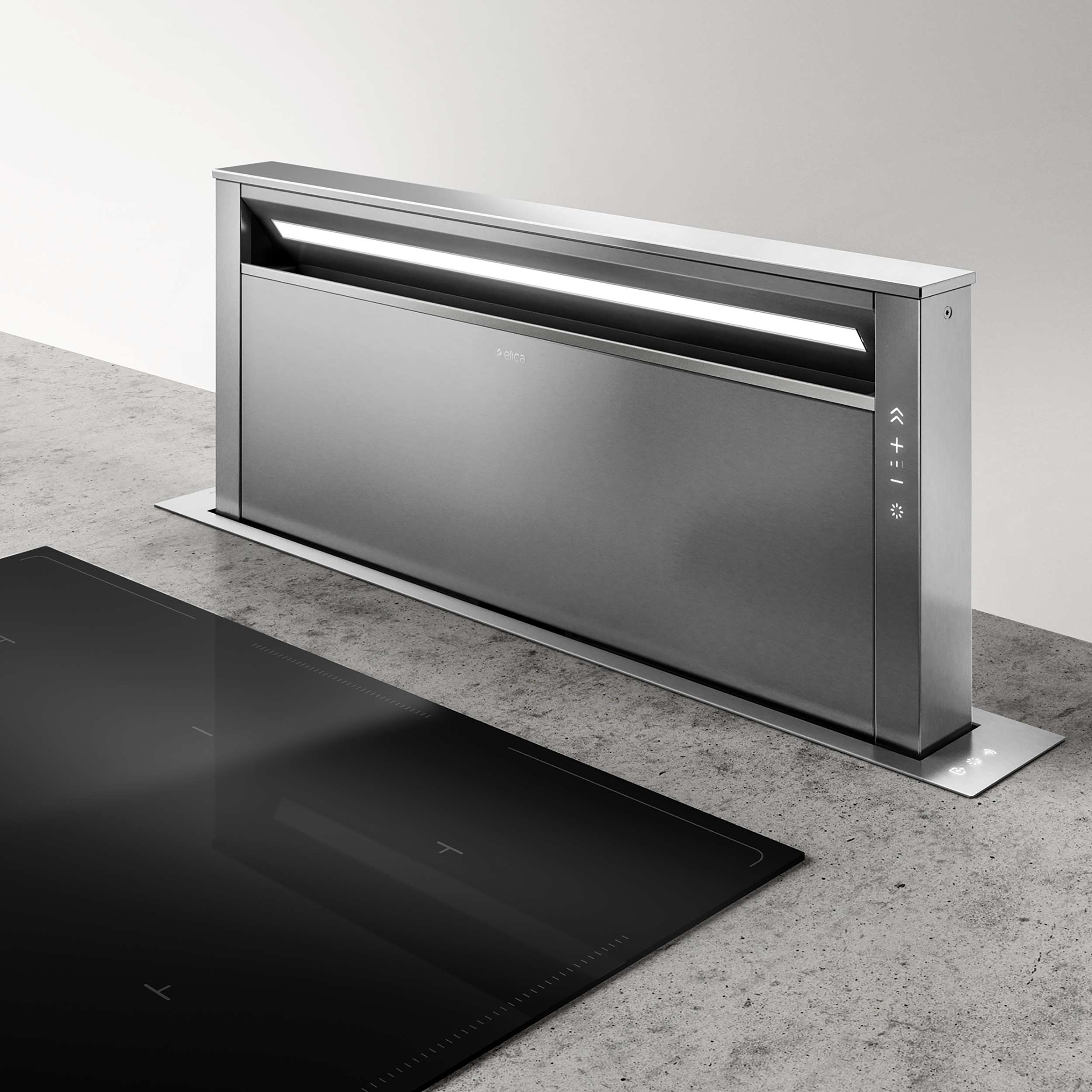 Pöytätasoon integroitava liesituuletin, jossa on sisäänrakennettu moottori - Teräs - Leveys 862 mm - Energialuokka A