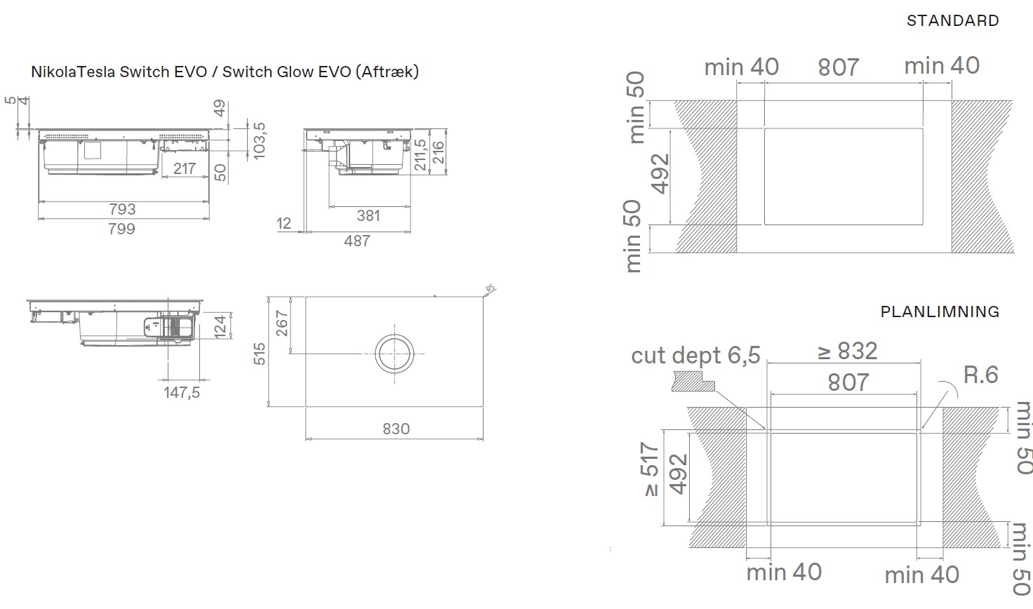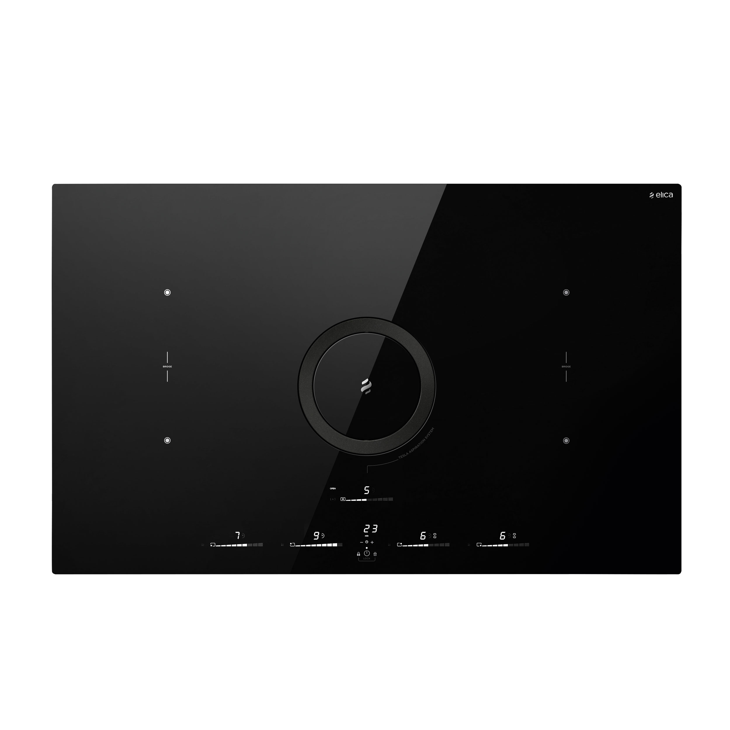 Liesitaso integroidulla liesituulettimella – Musta malli valkoisella näytöllä