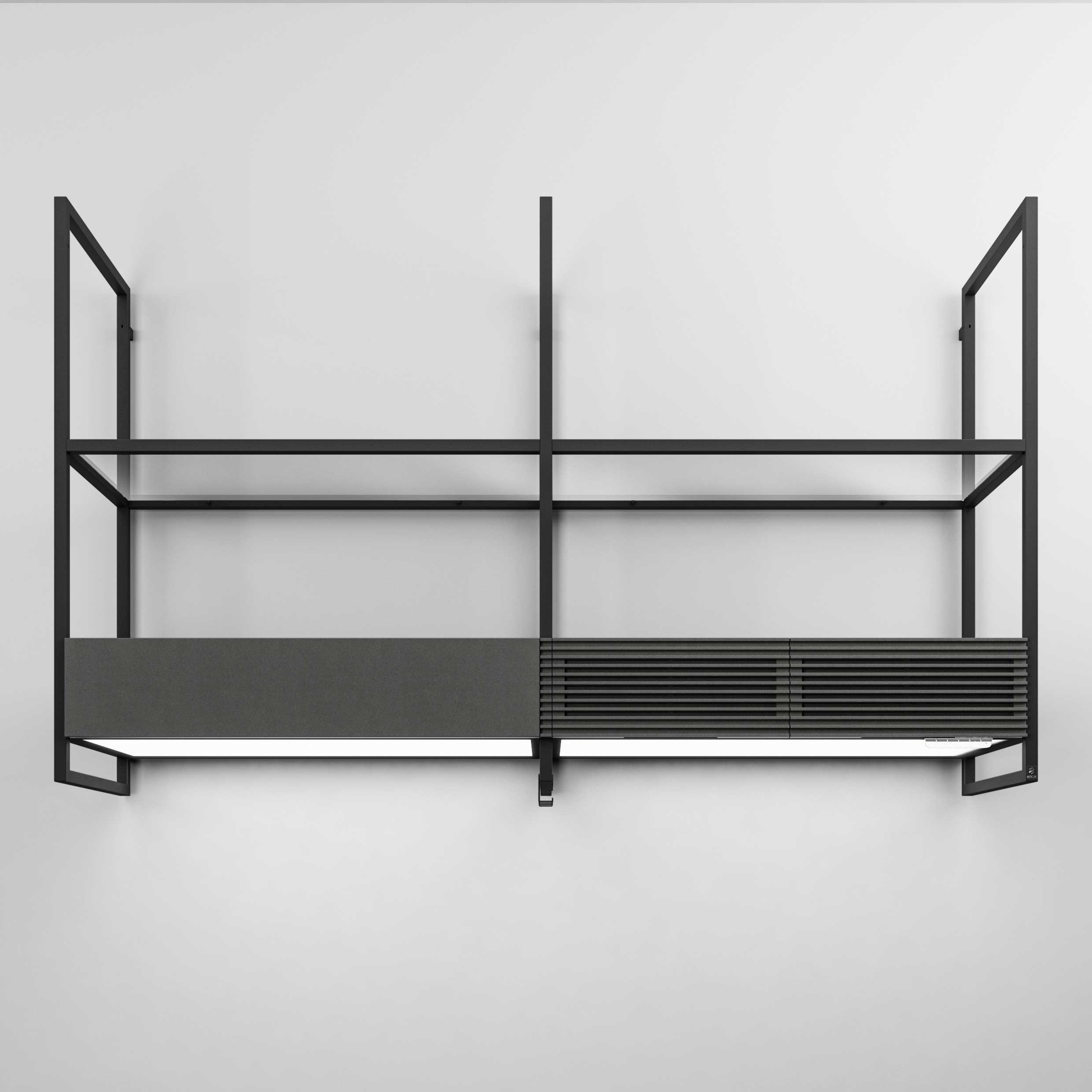 Modulaarinen seinätuuletin – musta metalli, Wi-Fi ja himmennettävä valo