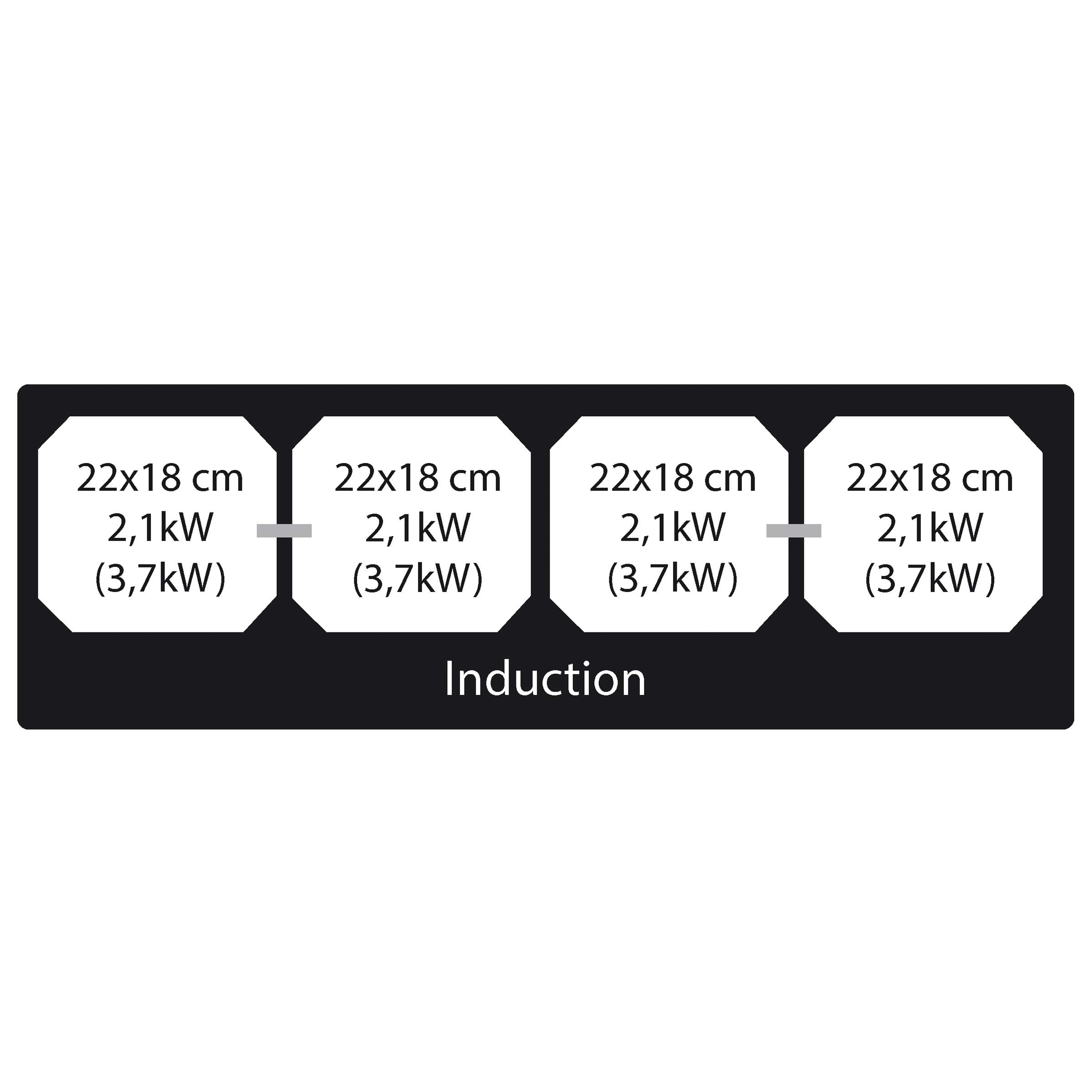 Induktiotaso - 4 aluetta - Musta - Leveys 870 mm