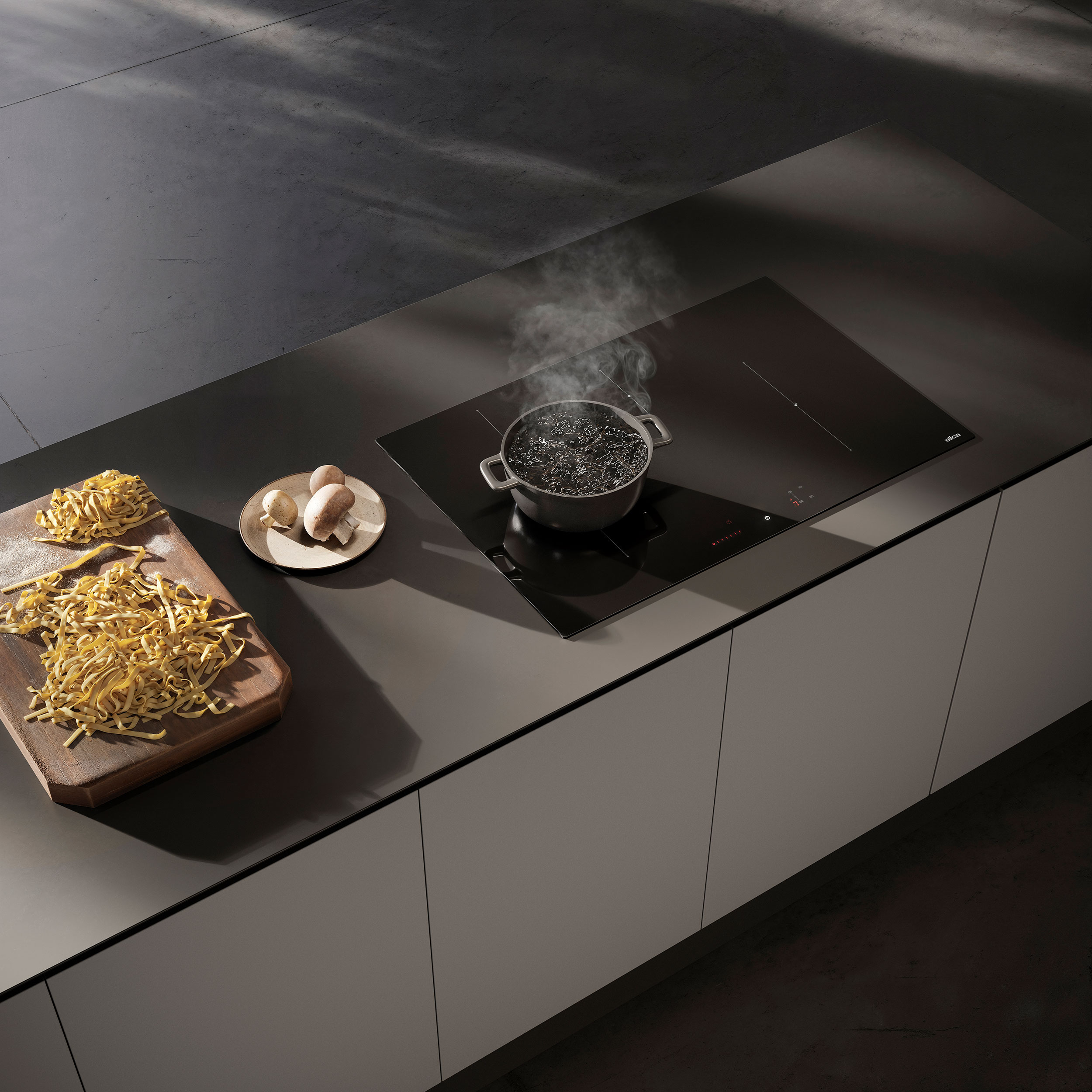 Suuri 80 cm induktiotaso Connex-teknologialla älykästä integraatiota varten. Silta-toiminto ja tyylikäs musta lasimuotoilu.