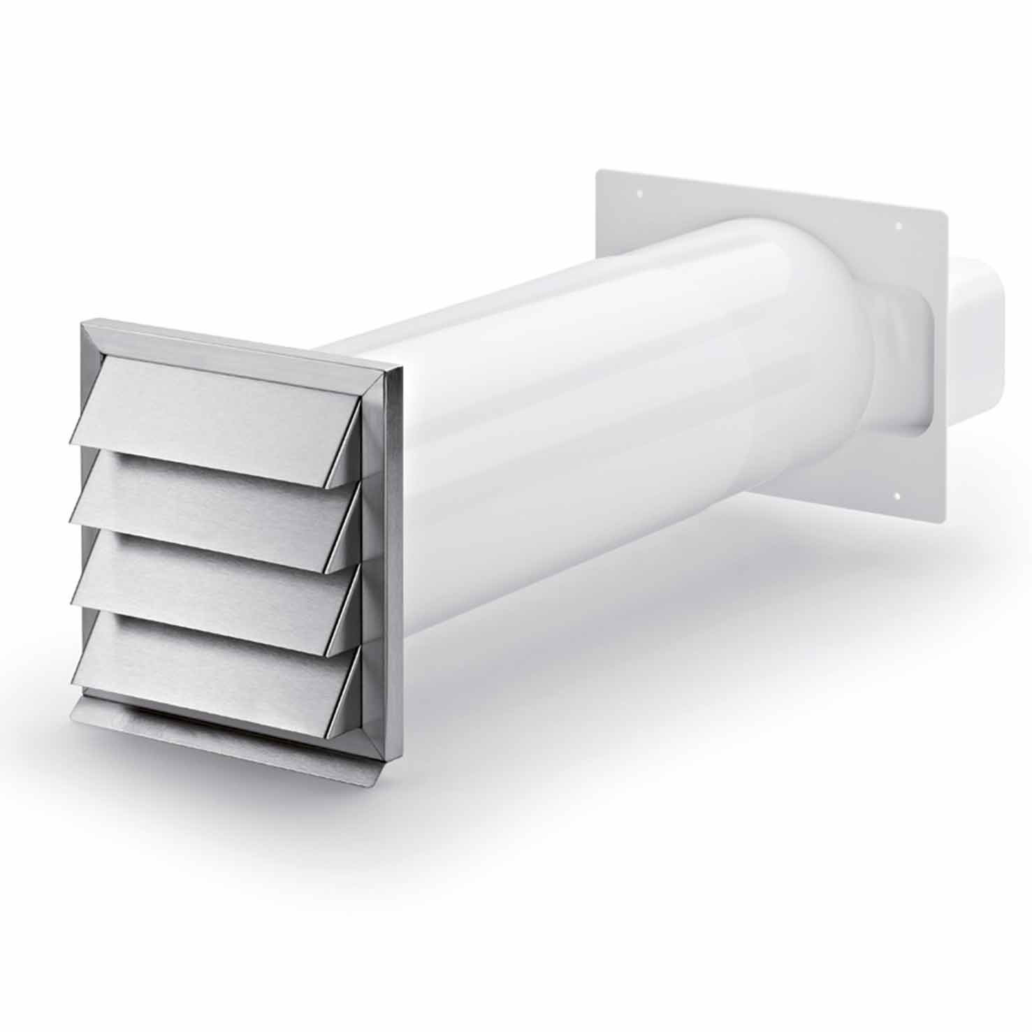 Patentoitu tekniikka markkinoiden edistyksellisimmässä kanavajärjestelmässä. Optimoi ilmavirran ja suojaa moottoriyksikköä. Vähentää melua ja säästää tilaa kaappien sisä- ja yläpuolella.