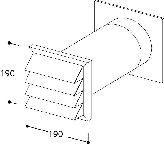 Seinäläpivienti Ø150:lle, varustettu takaisinvirtauksen estolla. Tehokas ilmanpoisto ja pieni lämpöhäviö.