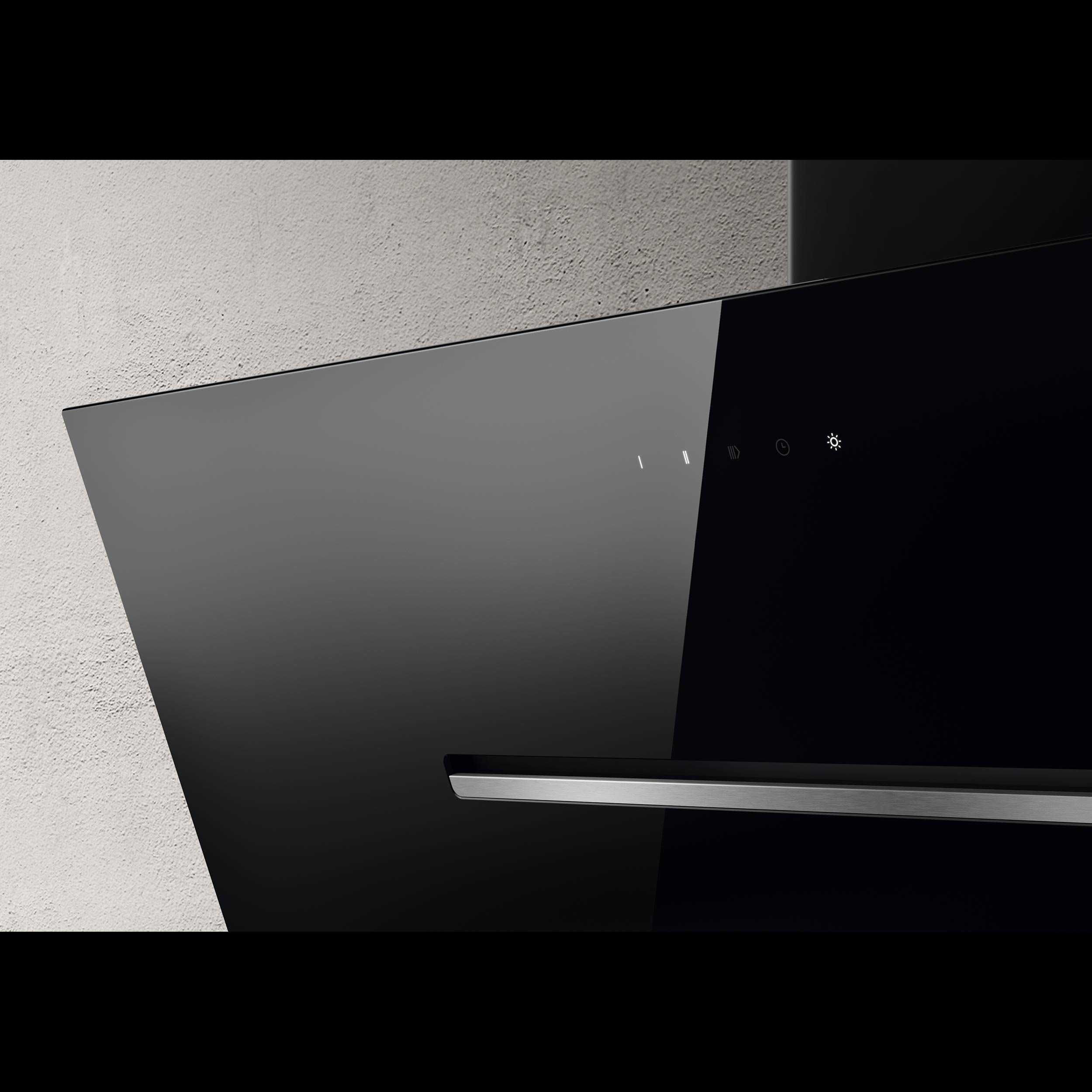 Seinälle asennettava viisto liesituuletin - Sisäänrakennetulla moottorilla - Musta - Leveys 900 mm - Energialuokka A