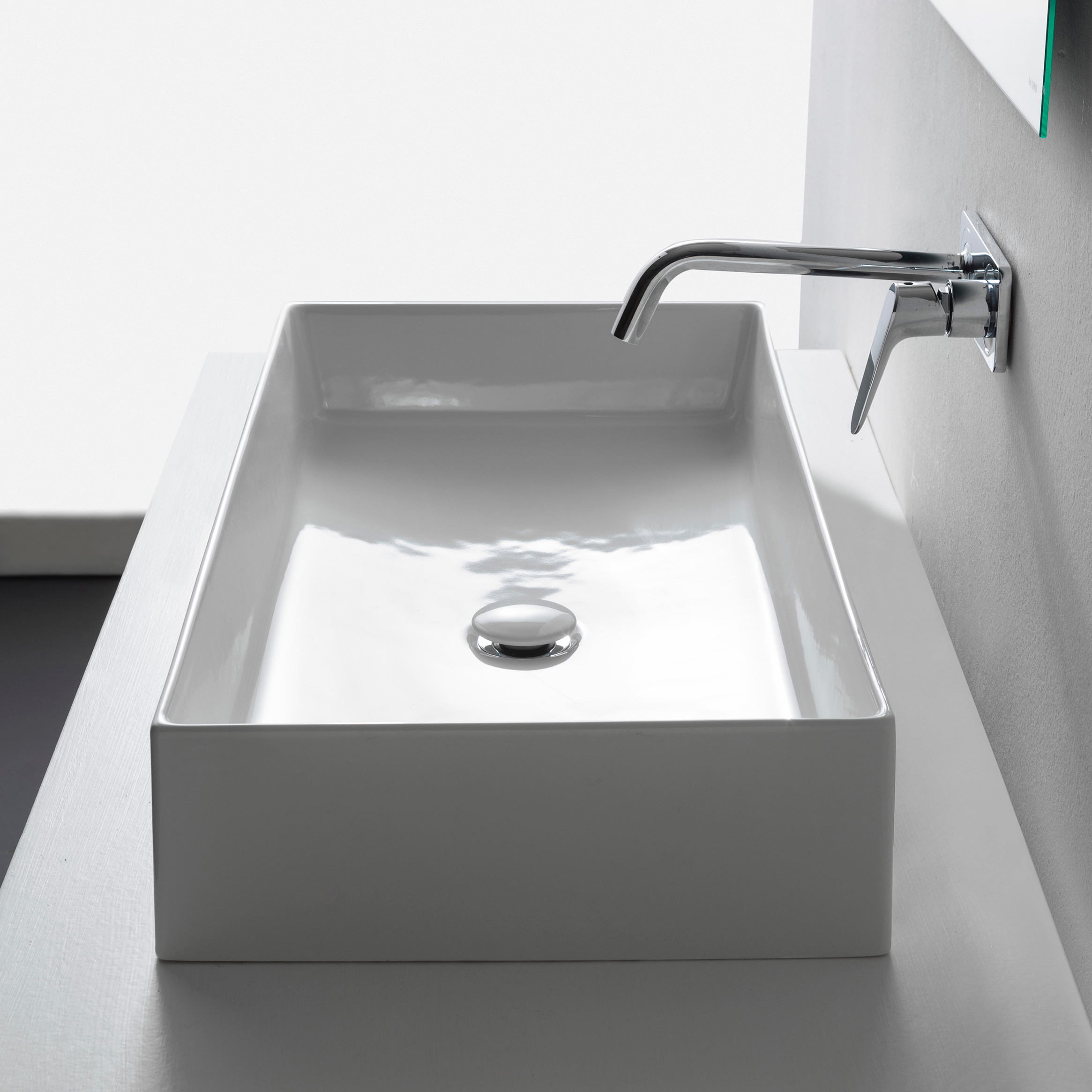 Pesuallas valkoisesta posliinista, asennetaan pöydälle - Valkoinen posliini