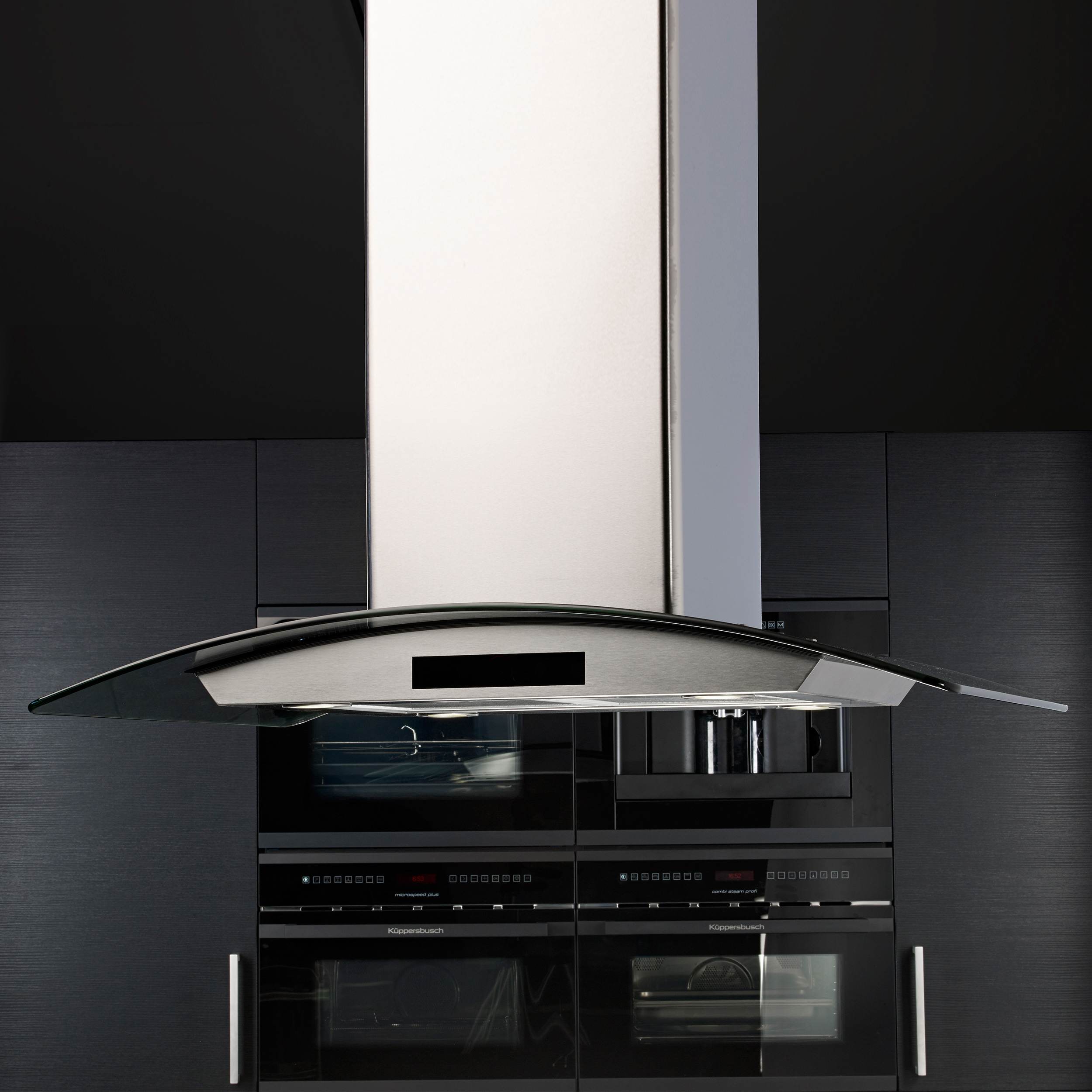 Vapaasti riippuva liesikupu, Sisäisellä moottorilla - Ruostumaton teräs/ lasi - 900 mm - A
