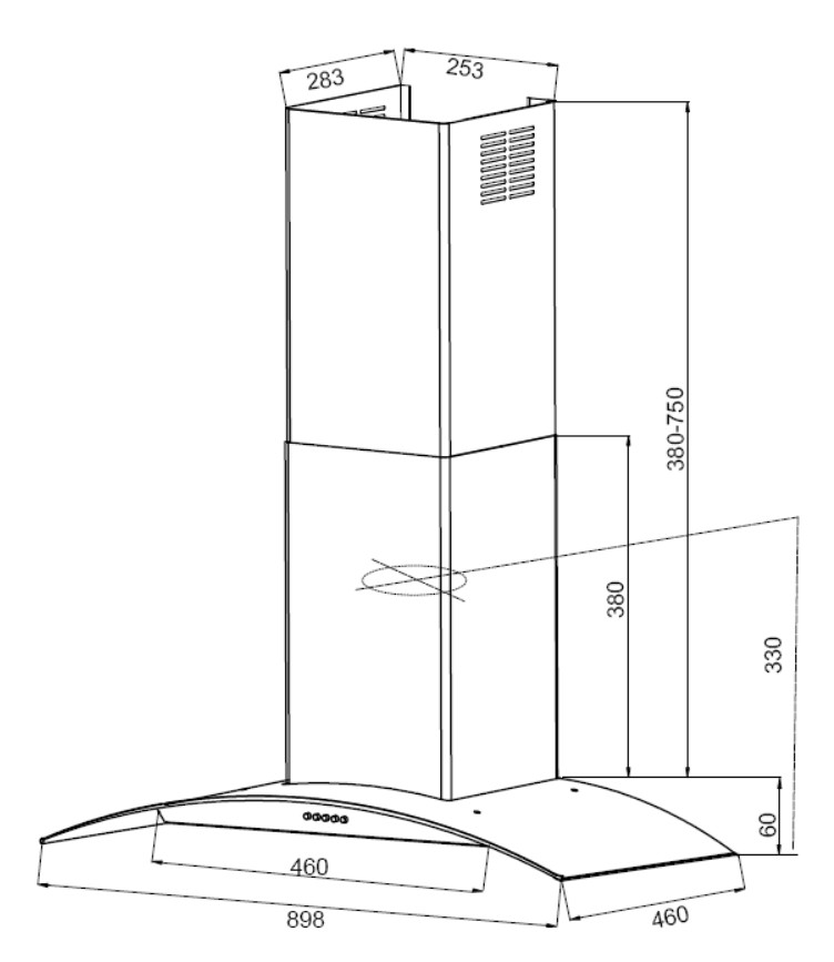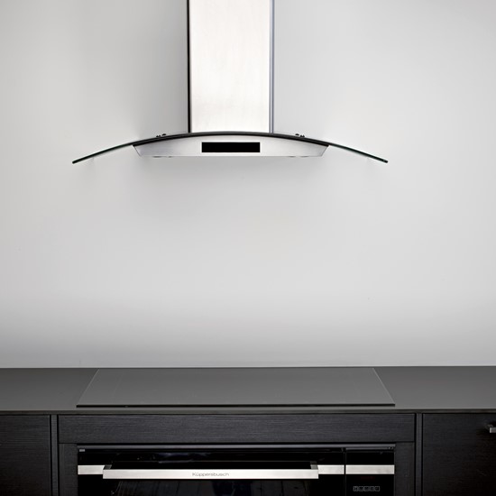Seinään asennettava liesikupu, Sisäisellä moottorilla - Ruostumaton teräs/ lasi - 900 mm - A
